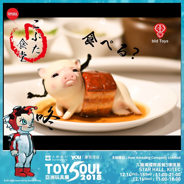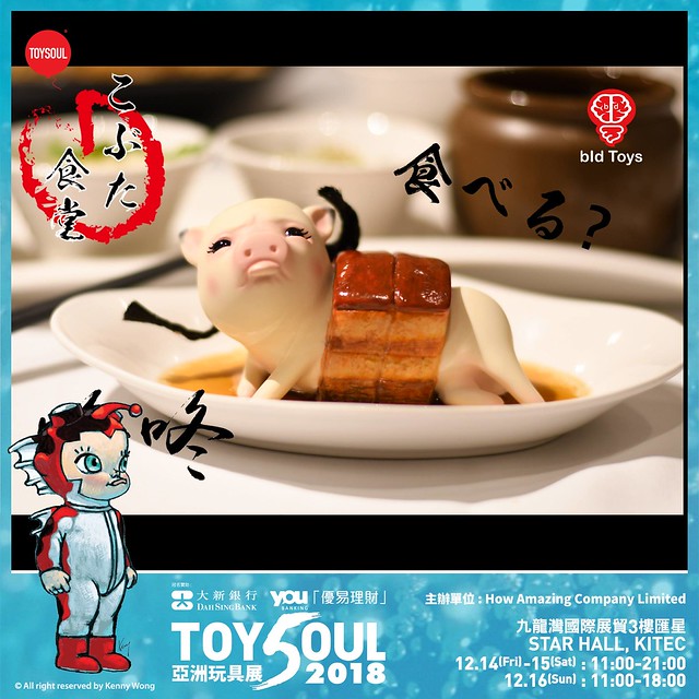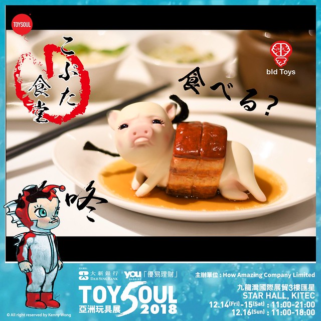 各位食客....阿不是,各位玩具人,由Bid Toys 發行,將小豬變成楚楚可憐、讓人食指大動口水直流卻始終捨不得吃的「粗豬食堂」(こぶた食堂 / Kobuta Shokudou)系列在推出「炸豬排豬 小勝」、「小籠包豬 小龍」之後,全新第三彈「東坡肉豬 咚咚」也端上桌!預計將在12/14~12/16 舉辦的《亞洲玩具展TOYSOUL 2018》搶先少量試吃享用發售啦!!