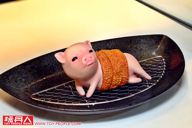 「粗豬食堂」系列絕對是最適合各位玩具人出門吃飯時攜帶的玩具之ㄧ,作品是以樹脂材質打造,將豬的中段部位做成各種人氣美食,以高水準的塗裝技法展現出宛如真實料理的逼真質感,不管是炸豬排金黃酥脆的皮衣,還是小籠包可口的內餡與流瀉出來的湯汁都令人感到飢餓不已!搭配小豬嘟著嘴巴,彷彿在苦苦哀求「不要吃我!」的表情,讓玩具人們在「好想吃啊!」跟「真的不能吃啦~」之間錯亂不已。