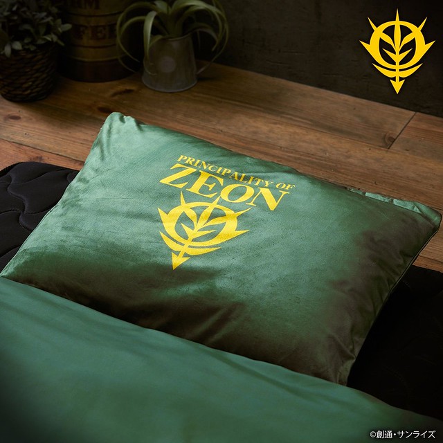 「吉翁軍造型室內用品」共推出了枕頭套被套組、抱枕、地墊、拖鞋等日常生活用品,採用吉翁軍經常使用的軍綠色為基調,大膽地印上了金黃的吉翁國徽,洗練而彰顯明確的主題,讓整個室內沉浸在吉翁軍的魅力之中,天氣再冷都能大喊出「SIEG ZEON!」