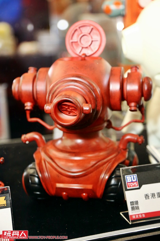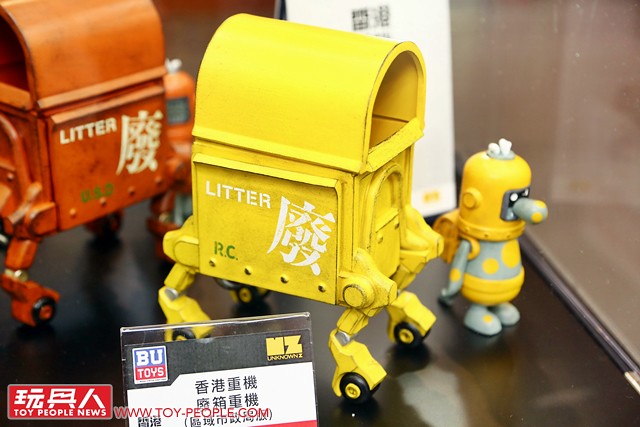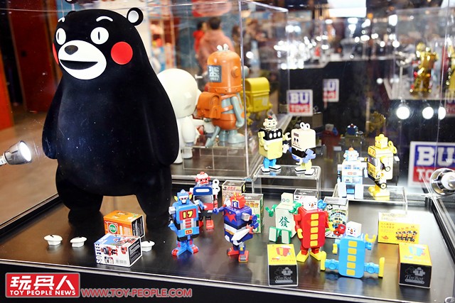 接著我們來到同樣精彩的BU TOYS 攤位!這裡展出多款超人力霸王、假面騎士和原子小金剛,超大的熊本熊更是一大亮點,此外,香港藝術家、《香港重機》作者Felix Ip 葉偉青所設計的「廢箱重機 + 垃圾俠」和超猛的水龍頭坦克都非常有意思!當然,排排站的巨大機器人也超吸引呀~
