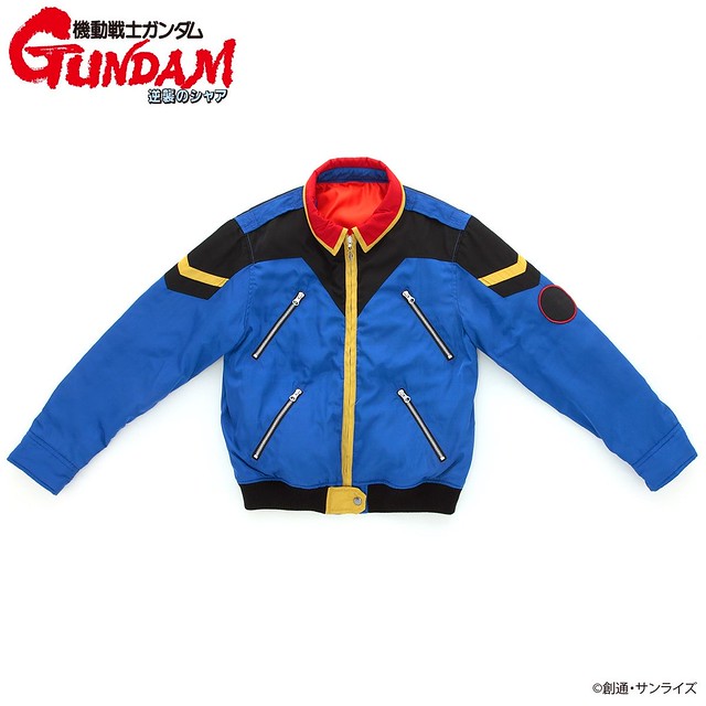 以《逆襲的夏亞》登場的阿姆羅所穿的軍服造型為設計,參考了當年動畫的角色設定稿,盡可能地重現身前四個口袋、各個色塊造型,裏面則是亮眼的橘色布料並有數個方便的內袋。夾克採用輕柔的聚脂纖維製作,內部有填入棉能加強防寒性。