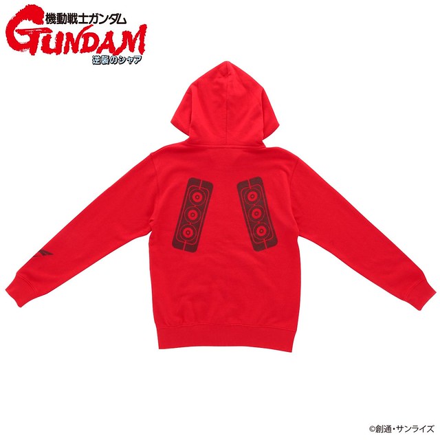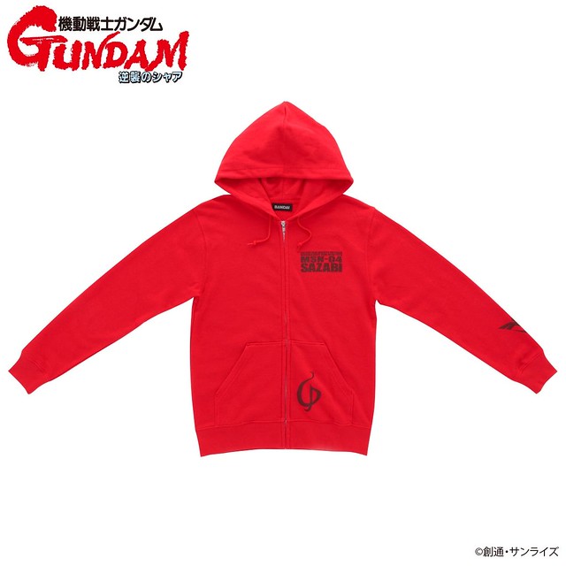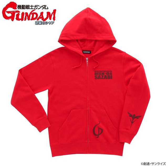 融入多種「MSN-04 沙薩比」元素的連帽外套,像是背部的感應砲圖樣、胸口的「MSN-004 SAZABI」字樣、左臂的吉翁國徽等。