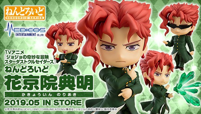 2018年12月22日新增官方宣傳圖片以及販售相關資訊,劇中擁有綠之法皇(ハイエロファントグリーン)遠距離遙控型替身的「花京院典明」是個沉著又聰明的青年,附有神情精悍的「普通臉」、露出自信笑容的「微笑臉」、吃櫻桃的「ReroRero臉」三款不同種類的表情配件可以替換,另外能搭配「墨鏡」呈現不同的樣貌,當然還有附拿著他最愛的櫻桃的手掌配件,在GOODSMILE 線上商店或MEDICOS ONLINE SHOP訂購此作還多附有「握手配件」特典,對《JoJo的奇妙冒險》系列作品有興趣的玩具人千萬別錯過了啊!