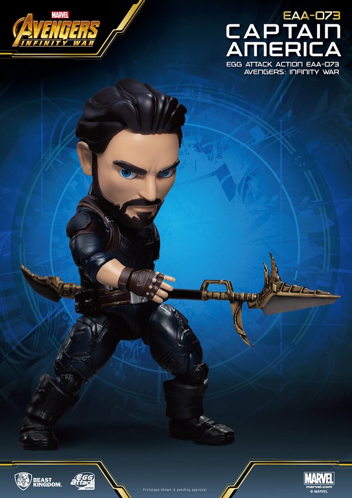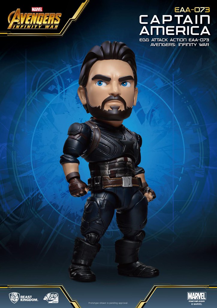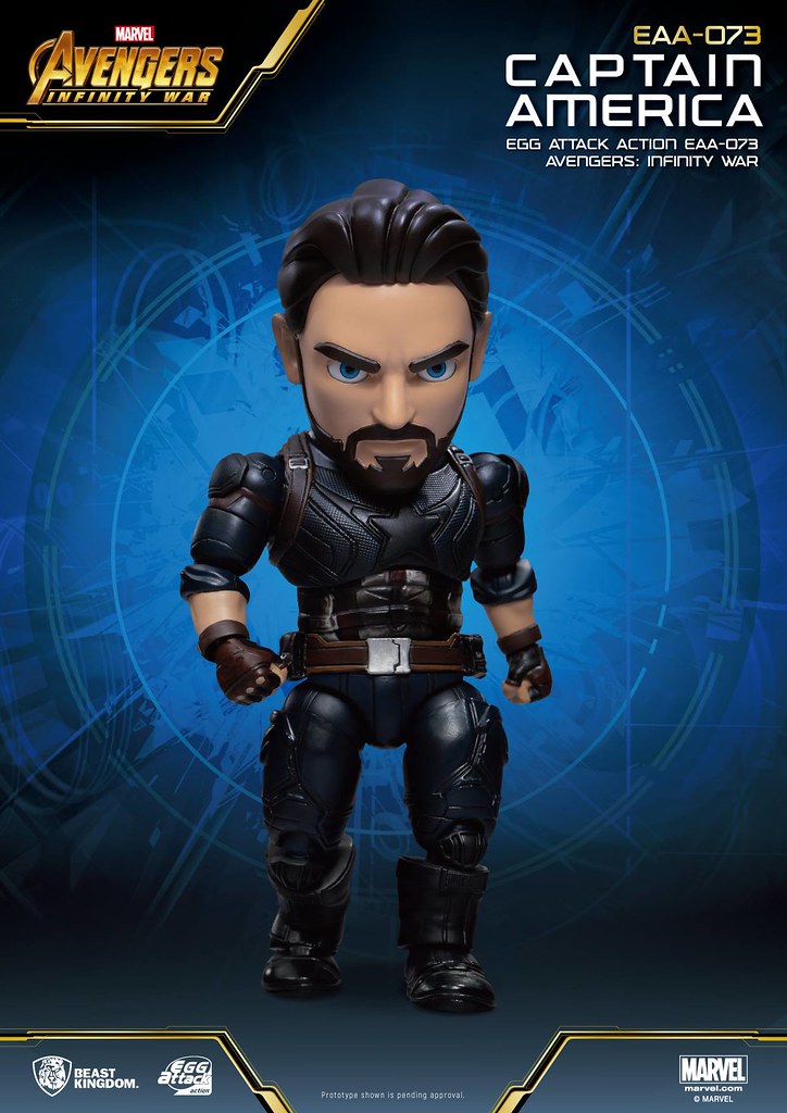 在推出「EAA-059 薩諾斯」、「EAA-060 鋼鐵蜘蛛」、「EAA-060DX 鋼鐵蜘蛛 豪華版」、「EAA-072 奇異博士」、之後,由台灣玩具品牌野獸國(Beast Kingdom)推出,以獨特Q 版造型、高度可動性為賣點的「Egg Attack Action(EAA)」系列於今(20)日再度發表了來自《復仇者聯盟3:無限之戰》的兩款新作「EAA-070 鋼鐵人馬克50」和「EAA-073 美國隊長」!「美國隊長」(Captain America)預計將於2019年第三季發貨!!