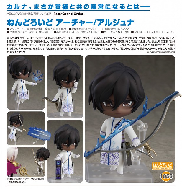 由日本 GOOD SMILE COMPANY 發行,旗下種類近千款的人氣商品「黏土人」系列,之前以人氣手遊《Fate/Grand Order》為題材已經公開過「Lancer/伊莉莎白・巴托里」、「Saber/阿爾托莉亞・潘德拉岡」、「Caster/吉爾伽美什」、「Saber/宮本武藏」、「Caster/尼托克里絲」以及「Lancer/迦爾納」等等多款黏土人系列的續作品,將繼續推出從者「Archer/阿周那(ランサー/カルナ)」,官網近日公開其宣傳照片以及販售相關資訊。