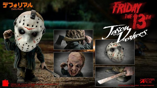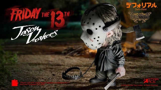 「Deform Real 傑森·沃爾希斯」高約15 公分,以本系列特殊的Q版比例重新詮釋這位戴著曲棍球面具的恐怖殺人魔!但完整保留了極具真實感的造型細節,可拆卸式的面具施以逼真的舊化髒污與掉漆,還能清楚看見那噁爛、壞掉的右眼!面具拆下來之後,傑森醜陋的面容更展現出高水準的製作技術,坑坑疤疤的膚質和皺紋、多處潰爛與血漬、扭曲的嘴巴跟爛牙、稀疏的頭髮都非常逼真,令人不舒服XD!