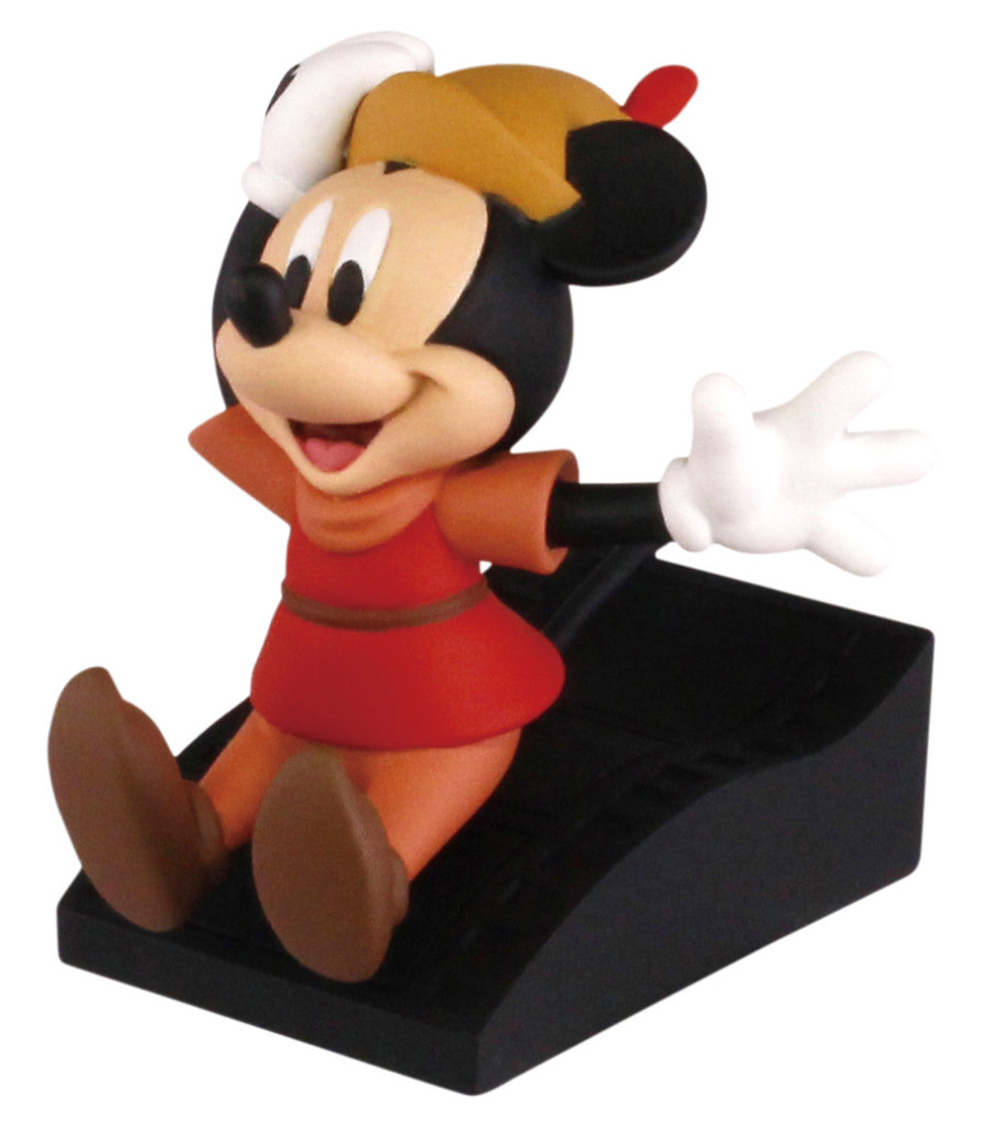 在這波轉蛋中,除了經典的現代版與《汽船威利號》的黑白色版本之外,還可以收藏到各個作品中不同造型的米奇,對於小時候很愛看米奇動畫的玩具人來說絕對是整套必收!每一款的服裝細節都有著不錯的還原度,而且動作都不一樣很有誠意呢!加上以膠卷為題設計的黑色台座就能把米奇們連在一起,展示出米奇的造型變化歷史。