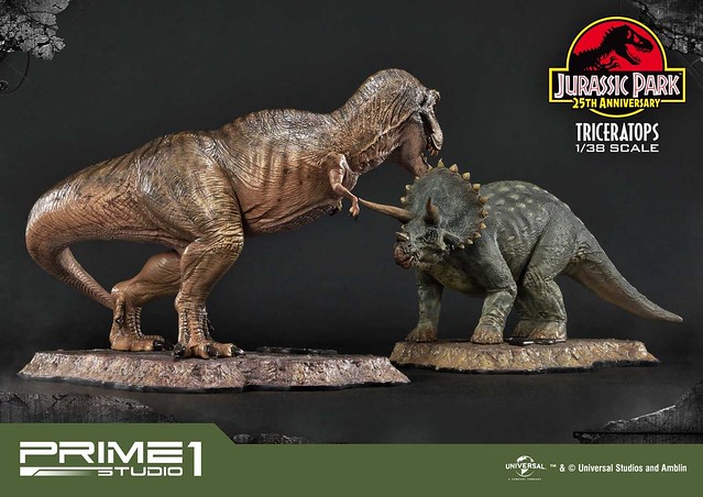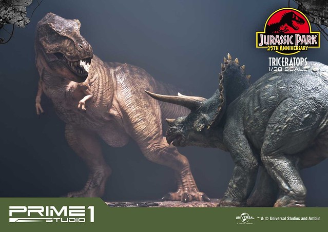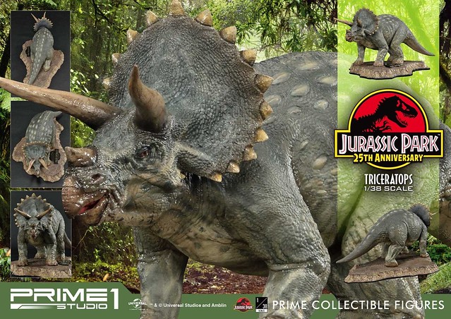 在推出1/15 比例的「霸王龍」、「三角龍」之後,日本高端雕像品牌Prime 1 Studio 公司日前再度發表全新收藏系列「Prime Collectibles Figure(プライムコレクタブルフィギュア)」的兩款新作,來自《侏羅紀公園》的「霸王龍」與「三角龍」,「三角龍」(トリケラトプス / Triceratops)1/38 比例全身雕像預計將於2019年6~8月發貨!!