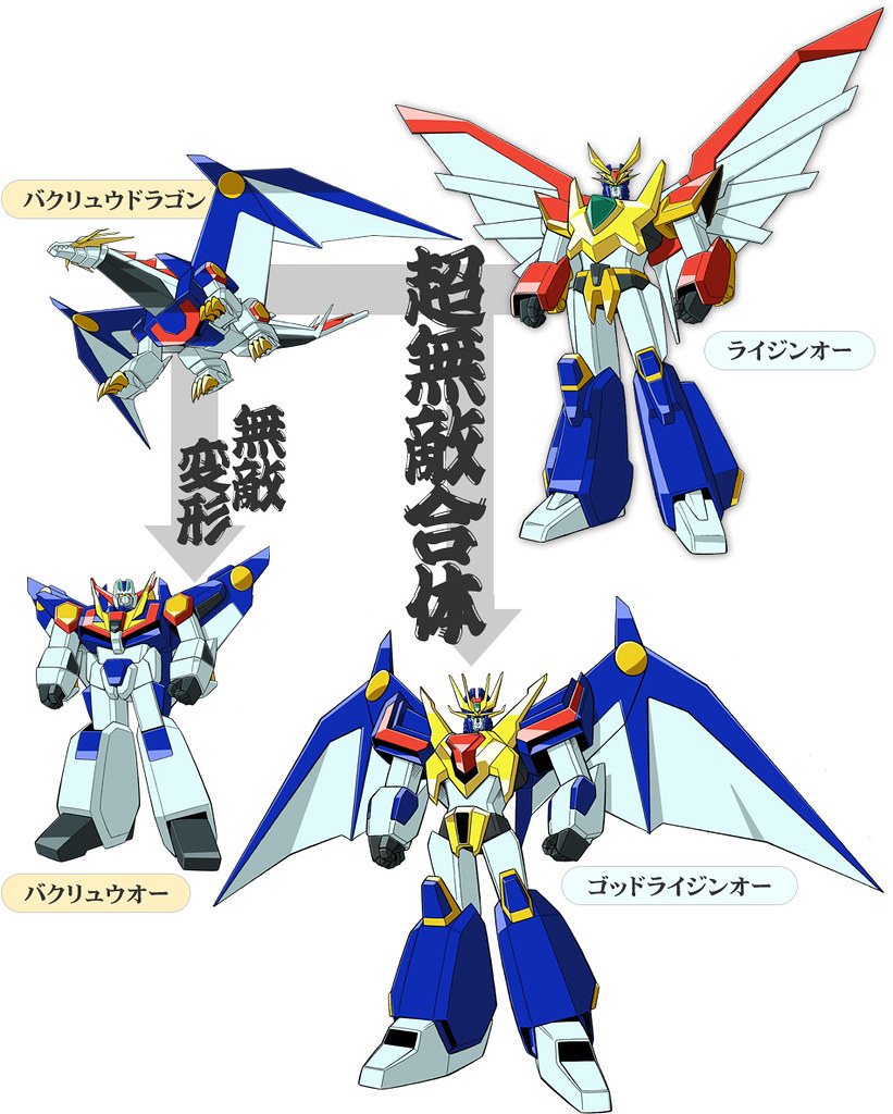 是的,相信不少老人都猜到了這款新作就是出自藍光人系列第一作《絕對無敵雷神王》的「雷神王(ライジンオー)」與「爆龍王(變形雷神王;バクリュウオー)」,而且皆具備合體.變形機構,或許可以期待「劍王+獸王+鳳王」合體雷神王、「雷神王+爆龍王」合體絕對無敵雷神王的機構再現!