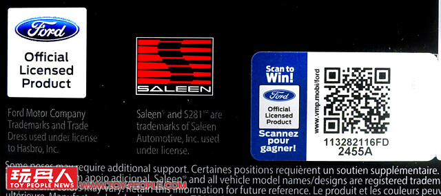 ▼外盒上印有福特和改裝名廠Saleen的正式授權標章。