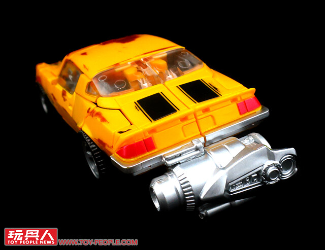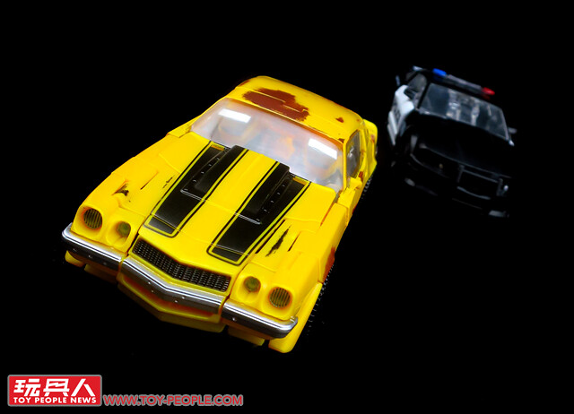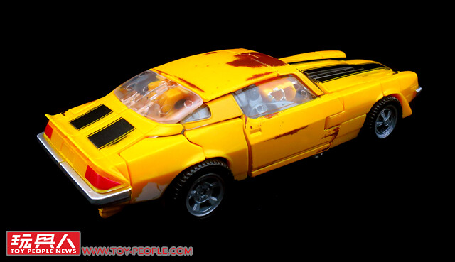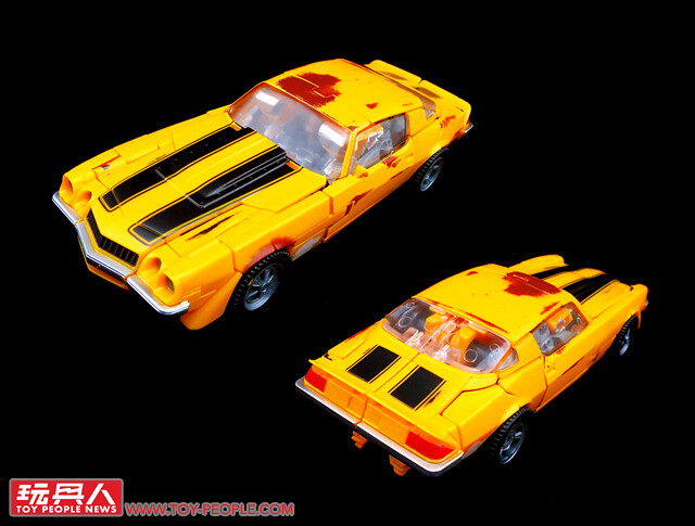 ▼No. 27「舊車大黃蜂」(Clunker Bumblebee),出自電影第一集中,大黃蜂最初於二手車行登場時的擬態。本款與電影工作室第一號同模,但是在車殼部位增添了許多舊化的塗裝,藉以重現劇中那老舊又殘破的1976版雪佛蘭科邁羅(Chevrolet Camaro)。