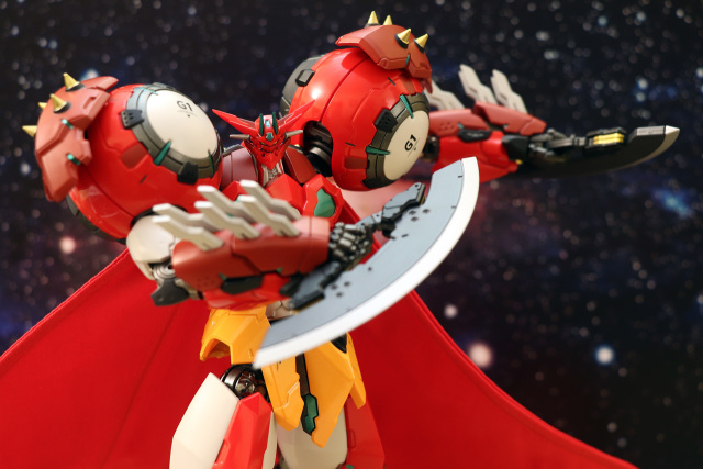原型由原型師森口あらん擔任製作,主體採用 ABS、透明零件及合金材質打造。細部的刻線及機械感完美呈現。頭、胸、肩部附有替換零件可以重現施展三一射線的場面。武裝方面只有三一戰斧左右各一把,以及以布料製作的披風「三一飛翼」,披風內了金屬線,讓你可以隨心所欲地擺姿勢而不失霸氣!配件不算多但可玩性倒是不俗。