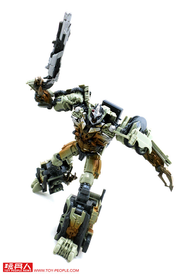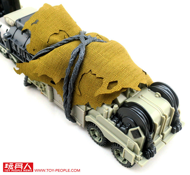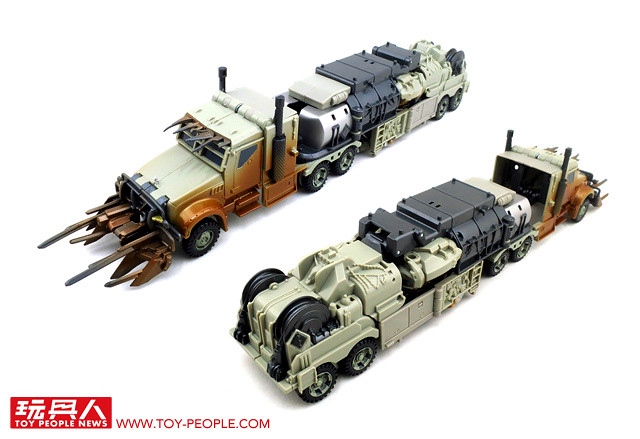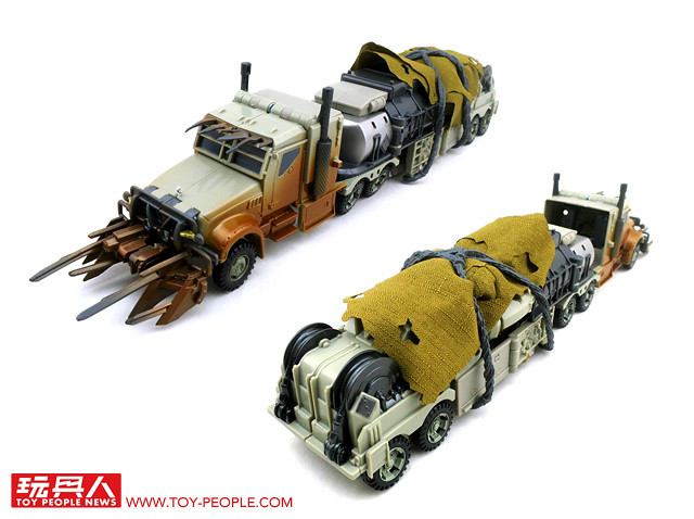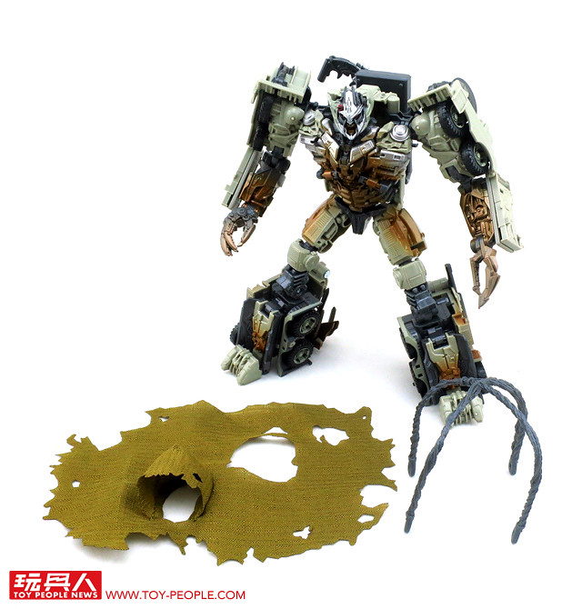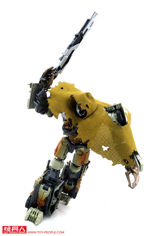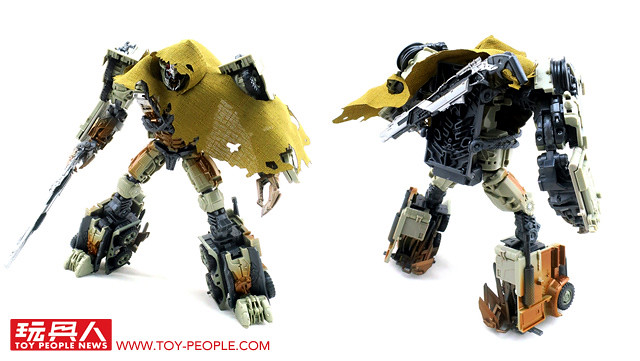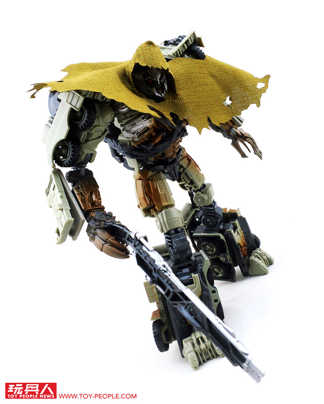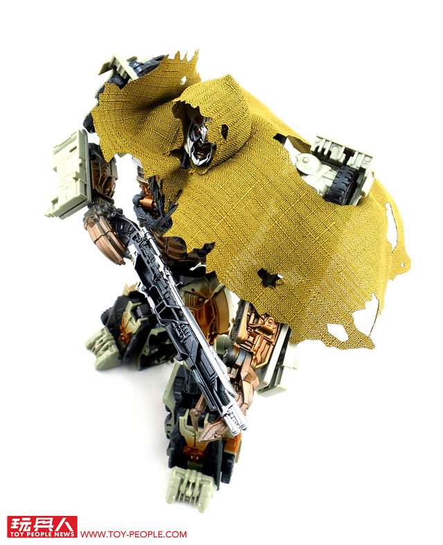 ▼No. 34密卡登(Megatron),出自電影第三集的落魄造型。歷經埃及一役的慘敗,忍辱負重的密卡登拖著殘破的身軀隱身於非洲塞倫蓋提(Serengeti)伺機再起,為了藏匿行蹤化身為麥克(Mack)的M915卡車,除了破損的頭部,本次更是首度以布料重現劇中流亡者的帽兜斗篷,獨特的造型絕對讓人過目難忘。