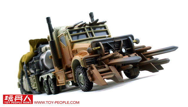 ▼載具模式,改裝版的M915帶有濃烈的殺戮之氣,車頭遍佈的利刃彷彿在向他人警告「別惹老子」。比較可惜的是從後方看去,車頭內部的空洞顯得有些醒目。