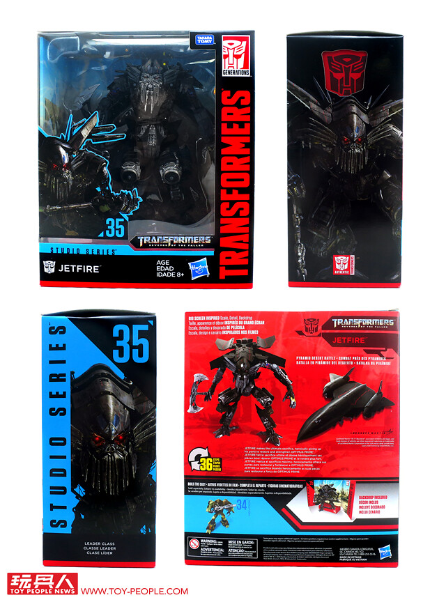 ▼No. 35「天火」(Jetfire),出自電影第二集的古老變形金剛。最初,天火是由墮落金剛(The Fallen)派出、意圖尋找領導母體(Matrix of Leadership)的「追蹤者」(Seeker)一員,而後被拋棄在地球自生自滅,化身為洛克希德(Lockheed)的SR-71黑鳥式偵察機(Blackbird)潛藏於航太博物館,被山姆一行人的火種源(Allspark)碎片喚醒,最後幫助山姆及博派迎戰狂派,犧牲自己成為柯博文的強化零件,助其戰勝密卡登與墮落金剛。