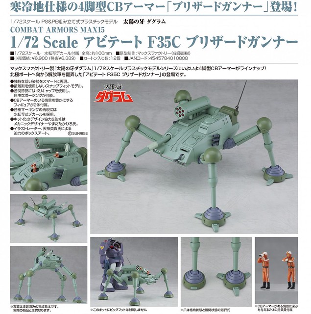 日廠Max Factory玩具公司的COMBAT ARMORS組裝模型以動畫《太陽之牙 達格拉姆》為題材,推出過多款劇中所登場的戰鬥機體,這次將繼續推出劇中寒冷地區樣式的四足型CB ARMORS「BLIZZARD GUNNER(ブリザードガンナー)」特殊機體的1/72比例尺寸的組裝模型作品,官網近日公開其宣傳照片以及販售相關資訊。