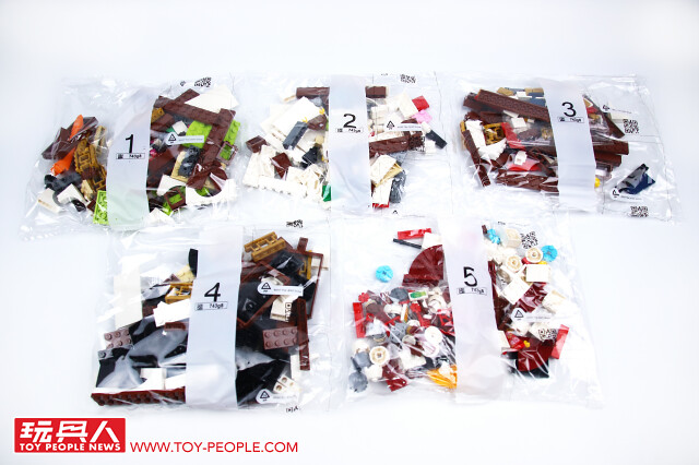 ▼零件數量並不多,這次總共有5包零件以及兩塊米色底版,說明書和貼紙被完整地包裝,這樣一來就不怕摺到貼紙囉~