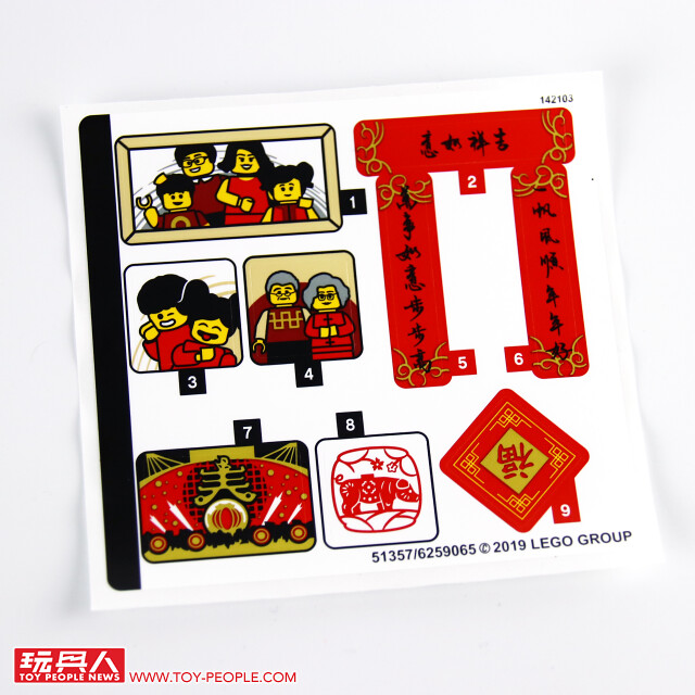 本次的盒組零件數共有616 件,整體採用開放場景的形式,呈現出屋子裡一家人團圓吃年夜飯、熱熱鬧鬧的情景,而屋外的庭院也有不錯的細節,人物的服裝、屋子的家具擺飾都有著滿滿喜氣!特殊的中式窗櫺結構也相當漂亮,春聯雖然是貼紙,但看到行雲流水的行楷字體心裡就很興奮啊!接著就趕快來體驗一下這組的魅力所在吧~