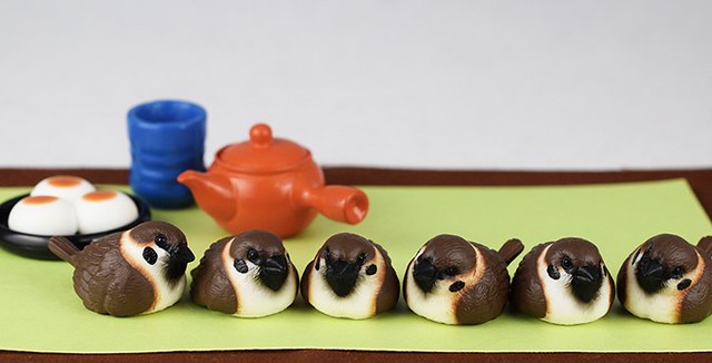推出多款有趣動物轉蛋的EPOCH(エポック)品牌,此次將以可愛的麻雀結合日式茶點來推出相當療癒的「和風麻雀(和すずめ)」(名稱暫譯)轉蛋作品,把各式日式茶點的"湯呑"、"急須"和點心"饅頭"搭配著身型短圓的麻雀,另外道具都可以與麻雀分開來擺飾,喜愛動物題材轉蛋作品的玩具人可以參考一下歐!