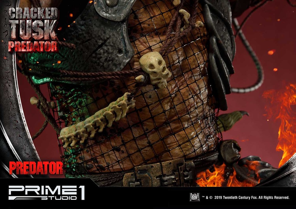 破碎獠牙終極戰士,最初是Kenner 公司所推出的一款終極戰士玩具,後來NECA 也有重新設計成7 吋可動人偶,而這次Prime 1 Studio 則是根據他在漫畫Predator: Life and Death 中的樣貌打造,「破碎獠牙終極戰士 1/4 比例全身雕像」高度來到101.4 公分,展現出極具威懾力的戰鬥姿態,最大的特色就在於面罩有著彎曲的利牙造型,而沒戴面罩的裸顏狀態時,則能看到左邊的獠牙是呈現斷裂狀態。