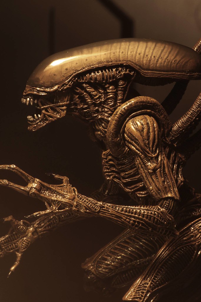 而「異形戰士」高度來到22.8 公分,共計30 處可動,再現了這恐怖狩獵者令人毛骨悚然的外觀,半透明的頭部能看見裡面的構造,那猶如機械與生命體結合的外骨骼刻畫出精緻的造型細節,上色部分也做出了漸層變化,細長尖銳的手指與可彎曲、末端呈現刀刃造型的尾巴都讓牠看起來極具殺傷力!嘴巴除了能開闔之外,還有可以伸出來攻擊人的內嘴呀~