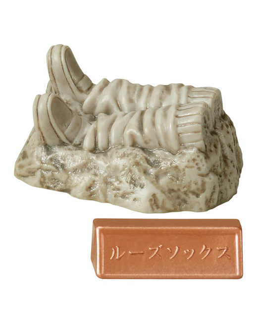 其實有很長一段時間,化石作用被認定是單純的「石化」,後來人類才逐漸瞭解化石形成的原理。這是一種非常複雜的過程,是生物、物理、化學三種現象的結合。不知道玩具人還知道紅極一時日本高校女孩都穿的「泡泡襪(ルーズソックス)」嗎?這次也有模有樣地收錄了"泡泡襪化石",身處穿泡泡襪世代的玩具人一錠很有感啊(淚)。