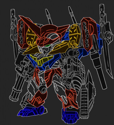 ▼ 運用不同企業零件打造的重武裝機器人示意圖