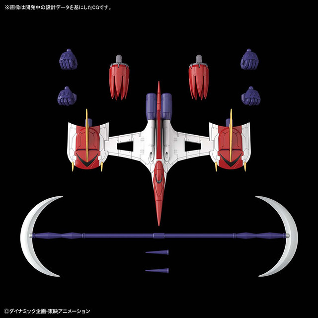 「HG 1/144 グレンダイザー(INFINITISM)」套件以柳瀬敬之老師的畫稿為基礎製作,不僅重現精密的裂甲造型與頭部細部分色,同時也承襲前兩作出色的可動與胸前的透明設計,手腕的刃狀部位甚至能像原作般展開。武裝部份收錄可拆開的「戰神雙釘」、「螺旋粉碎飛拳」腕部,更有一整架「飛天神機」能與克連泰沙合體再現飛行姿態!