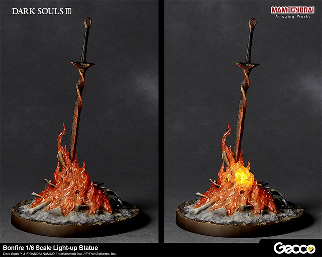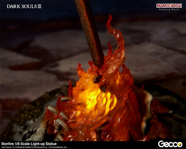 推出許多電玩主題精彩雕像而廣為人知的日本玩具公司 Gecco 繼「薪王們的化身」、「洋蔥騎士 卡塔利納的傑克麥雅」、「亞斯特拉的上級騎士 奧斯卡」、「黑騎士」後,再度發表了《黑暗靈魂》系列最新作品「篝火 1/6比例發光雕像」預計於 2019 年 07 月~08 月發售的消息。