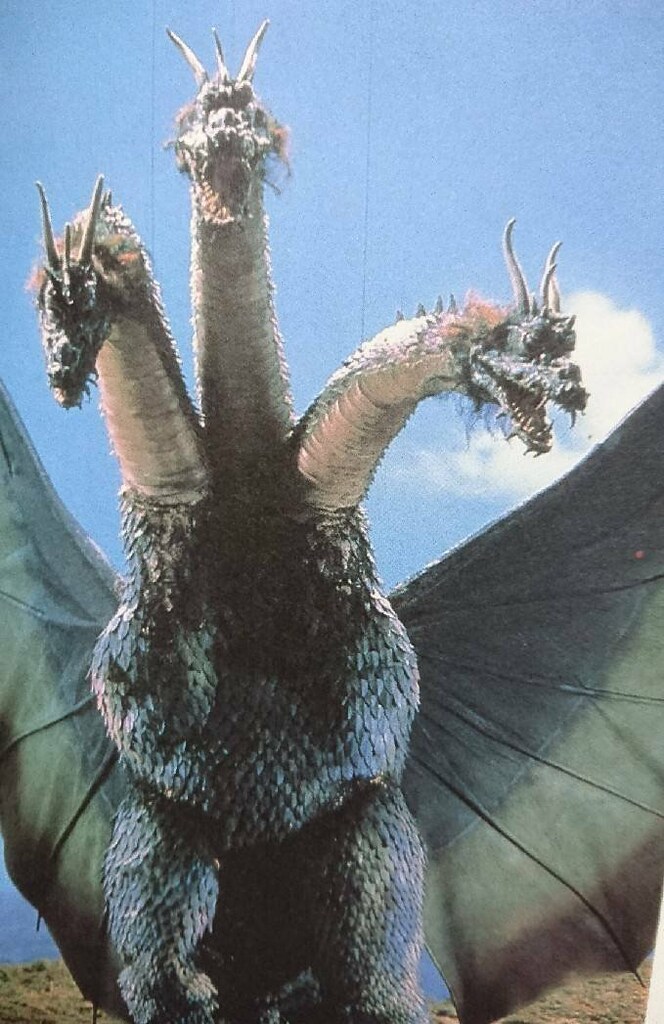 在《哥吉拉》系列電影中極具人氣的怪獸「王者基多拉」首度登場於 1964 年上映的《三大怪獸地球最大決戰》,其造型深受與東寶相關的兩部電影影響,一是 1959 年東寶製作的特攝電影《日本誕生》中的八歧大蛇,二是新東寶代理、日本於 1959 年上映的蘇聯電影《勇者伊利亞 巨龍與魔王征服》中的噴火三頭龍,並結合多種幻獸的特徵。不過最早王者基多拉的體色並不是現在看到的金光閃閃,而是由藍、白、紅構成,宛如爬蟲類體表的鮮艷色彩。當然,最終這個色彩版本並沒有被採用,被稱為「NG配色」。