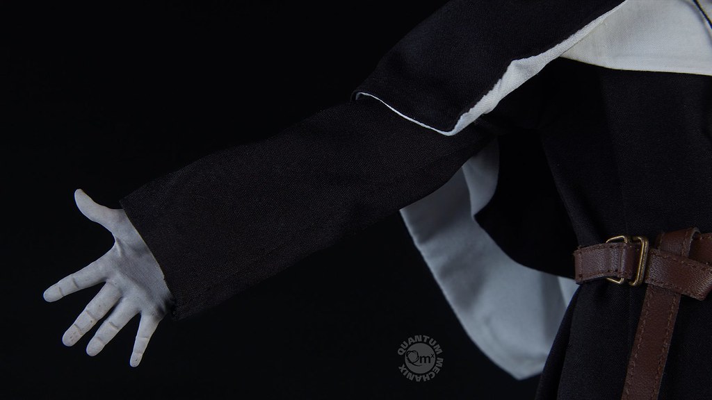 「鬼修女 1/6 比例人偶」高約30 公分,全身共計36 可動,再現了劇中的恐怖樣貌與量身剪裁的修女衣裝,頭雕部分有看得你心裡發寒的凝視臉跟露出尖銳牙齒的吼叫臉,皮膚的裂紋、蒼白的面龐、發黑的嘴唇,以及金色的雙眸都高度還原,掛在胸前的銀色十字架與皮革質感的腰帶則讓本作更具真實感,搭配多個替換手型就能讓人嚇得魂不附體!另外,還附上了在《厲陰宅2(The Conjuring 2)》出現的畫作配件,要再現「拿著畫衝出來」姿態也沒問題!!