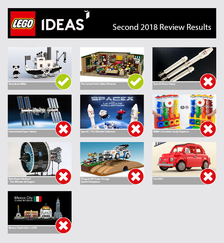 才剛剛介紹完「Ideas」系列的第24號盒組「LEGO 21316 摩登原始人」,樂高又於日前公開了2018年第二波LEGO IDEAS 平台入選作品的審核結果,在這10 件作品中,是由szabomate90 所設計的「汽船威利號(Steamboat Willie)」和由Mric76 所設計、來自影集《六人行》的「中央公園咖啡館(Central Perk)」通過審核並且將會正式商品化!!