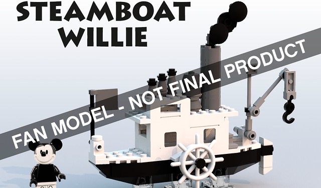 首先,我們來看看經典的汽船威利號吧!過去小編也有介紹過,並一直癡癡等著這組可以通過審核並商品化,沒想到願望真的實現啦~以黑、灰、白色磚精準地拼搭出小巧精緻的汽船,搭配從煙囪冒出的黑煙,看起來相當討喜~兩側的水輪、汽笛、鉤子......等細節都有不錯的還原度;szabomate90 也有在後續做出一些更新,除了改用平滑磚、更改船體部分設計,使船體更貼近原作之外,還增加了米妮人偶、牛、鳥,和吉他。