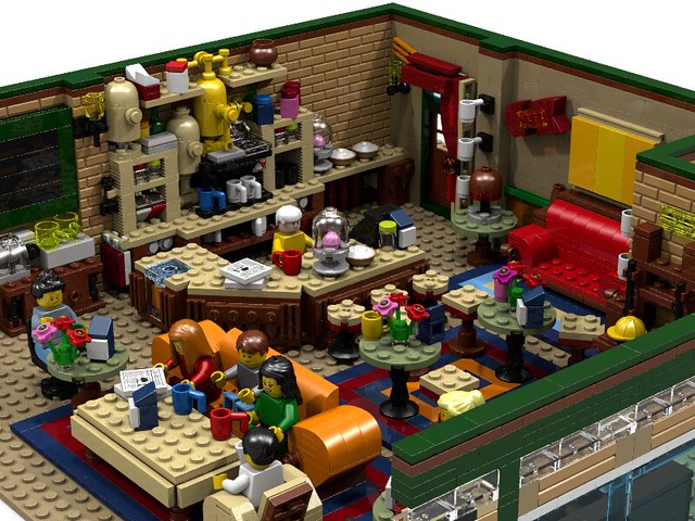 接下來是經典喜劇影集《六人行》中的標誌性場景「中央公園咖啡館」,Mric76 採用把玩性高的開放式場景,以1719 片零件完成,運用繽紛的磚堆砌出咖啡館裡豐富的內裝,尤其主角們常常窩在上頭的橘色沙發實在令人懷念!另外還有櫃檯、巨大咖啡機、各式小圓桌和椅子......等,相信忠實粉絲們都可以在這組找到許多充滿回憶的元素,實在令人期待!