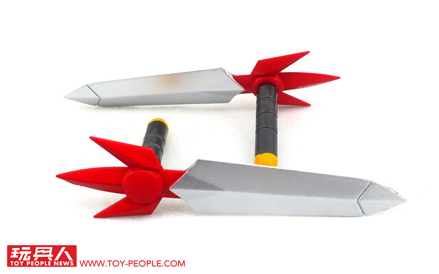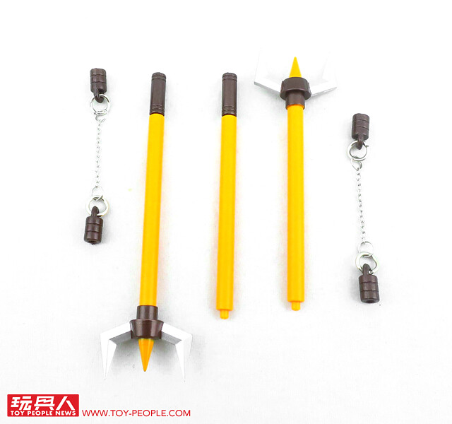 從腰部黃色腰帶分離出來的三節棍,能靈活地揮打、防禦敵人攻擊,運用尾端的尖刺掃向敵人。