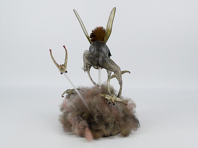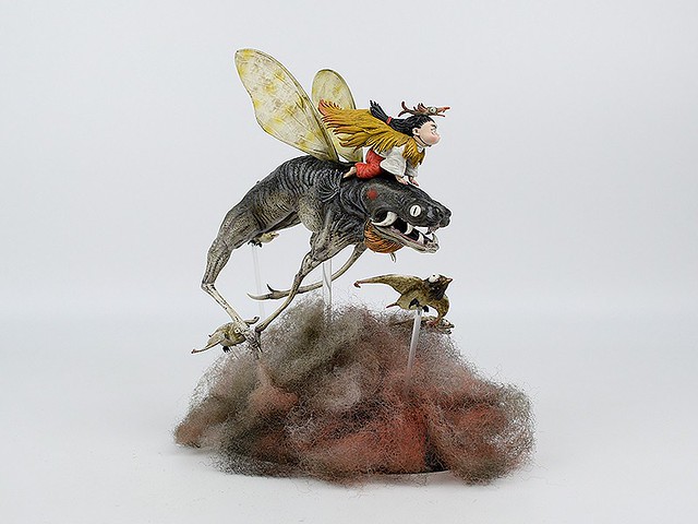 知名香港玩具品牌threezero公司之前以繪師早稻的「松風」畫冊為題材,已經推出過其故事內容所登場的角色人物「鴉牙」的1/6比例人偶可動作品後,這次將繼續推出「小蟲(リトル・バグズ)的上色完成作品,一樣是將早稻所繪製的2D水墨畫作品,精彩地成功轉化成立體的作品,並運用多種複合性素材來製作底座以及畫面上的物件,像是蟲的翅膀使用透明材質來呈現,下方的雲霧是以"化學繊維的綿"來製作,喜愛早稻作品的玩具人可以參考一下歐!