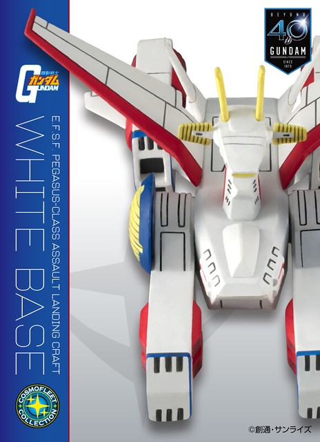 在2007年曾經發行過Cosmo Fleet Collection(簡稱為CFC)コスモフリートコレクション鋼彈系列的盒玩作品,系列將動畫當中所登場的戰艦縮小至盒玩尺寸大小,這次將以《機動戰士鋼彈》動畫開始播映40週年紀念來推出「地球連邦軍 飛馬級強襲揚陸艦 白色基地(地球連邦軍ペガサス級強襲揚陸艦ホワイトベース)」,這次將以透明材質底座並印刷有英文名稱字樣,使用經典吊卡包裝發行,喜愛《機動戰士鋼彈》系列作的玩具人可以參考一下歐!