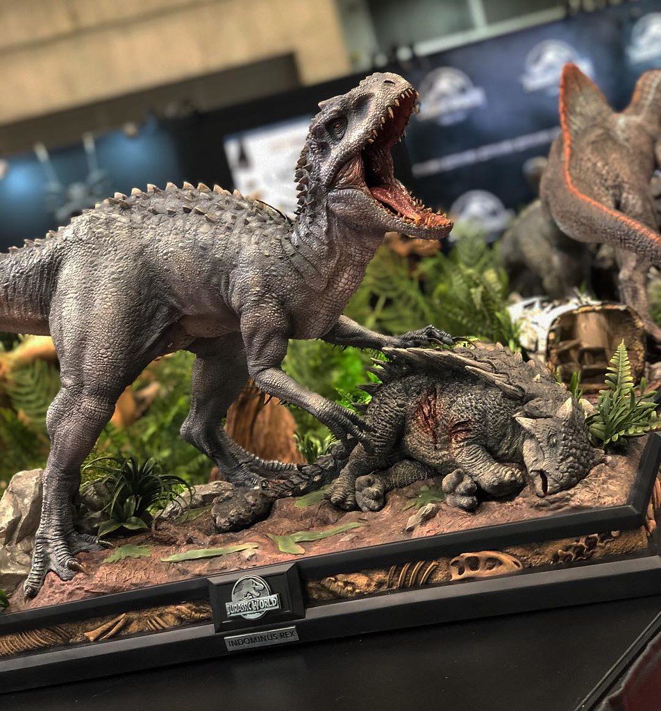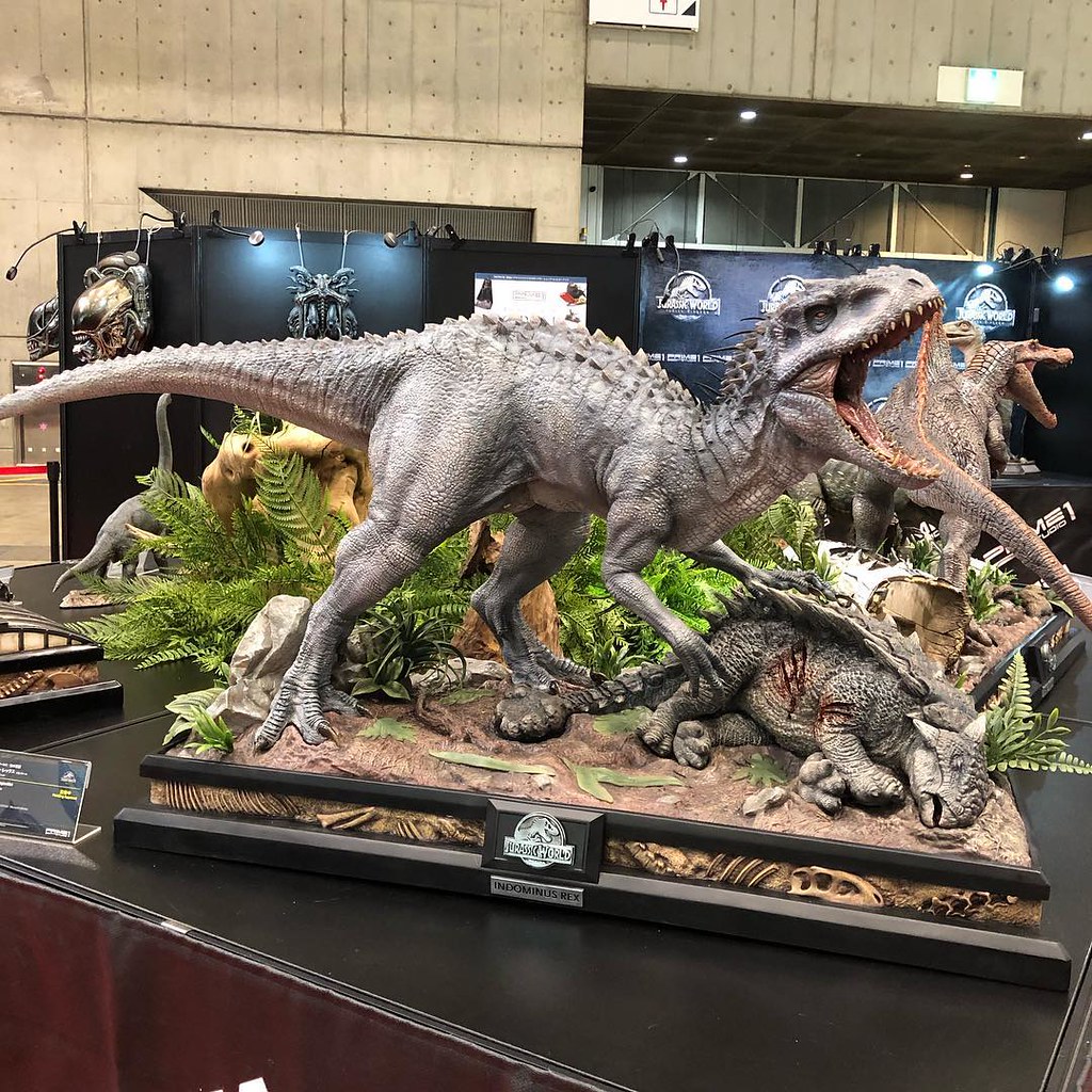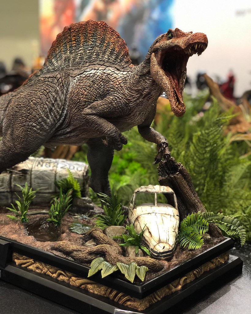 ▼《侏羅紀世界》的「帝王暴龍(Indominus Rex)」,《侏羅紀公園》的「腕龍(Brachiosaurus)」、「脊龍(Spinosaurus)」
