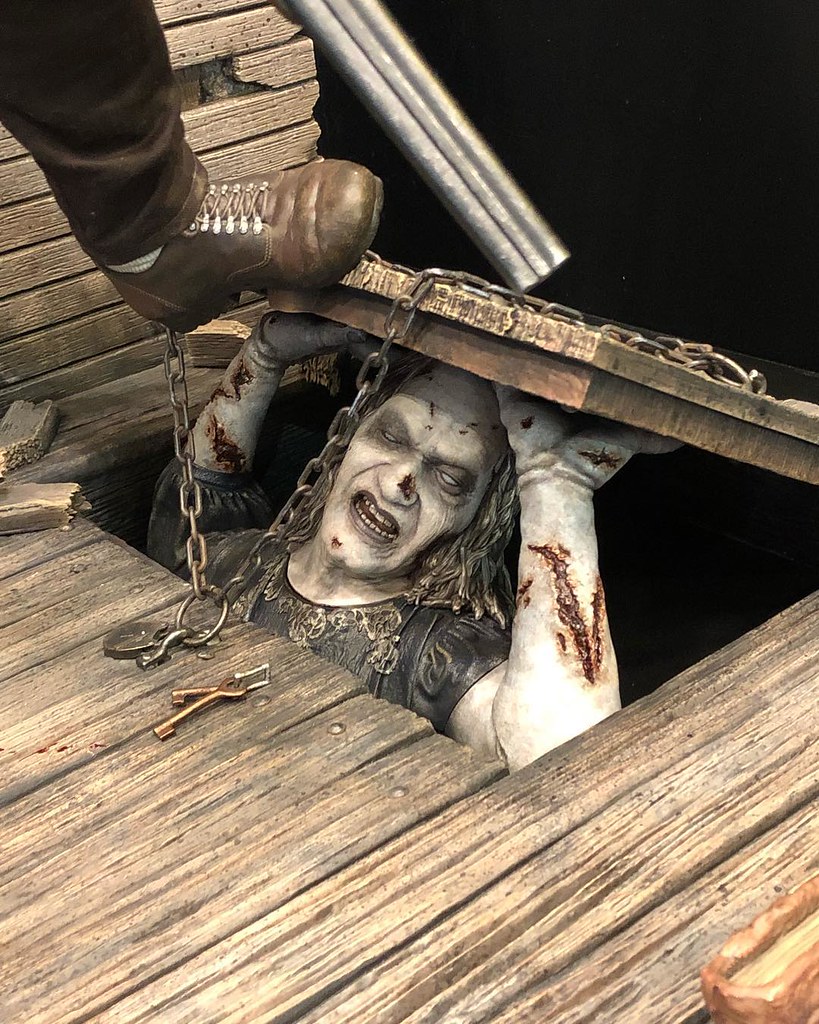 ▼《鬼玩人》的「艾許·威廉斯(Ash Williams)」,以劇中的破爛木屋為場景,左腳還踩著一隻正要跑出來的惡鬼,太令人興奮啦!