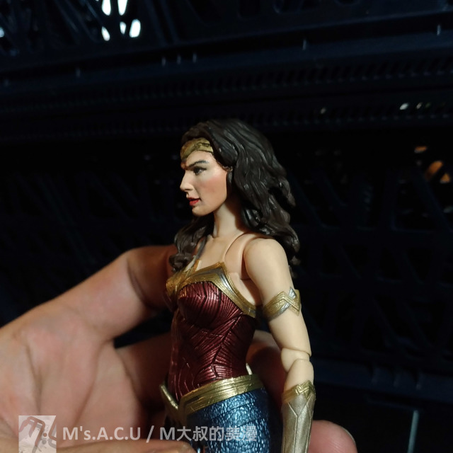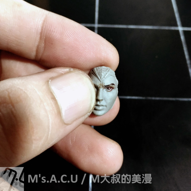 神力女超電影還沒上映就為他著迷, 看了Mafex又等了SHF出版的神力女超都不像那演員, 心裡有些失望啊, 但又真的是超愛Gal Gadot的神力女超阿, 所以才反覆反覆再反覆的花時間, 重雕再重雕, 修飾再修飾, 在神力女超電影上映後的一年多, 女超1.0版頭雕終於完成, 在過程當中了解到每個人看電影會注意到的演員臉部細節不同, 這可說是我印象做深刻的神力女超的表情特徵, 那麼素體會挑選SHF女超主要有兩個原因, 1.體型表現及可動較優. 2.兩段式頭髮設計頭部可動較好. 現在換上了新頭雕, 看著 Gal Gadot女超站在桌上就超開心, 桌上只有一盞檯燈 照片拍的不好請見諒阿.... 純分享..謝謝