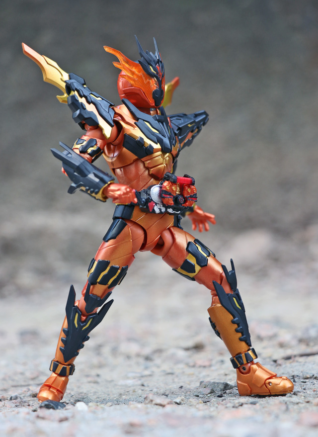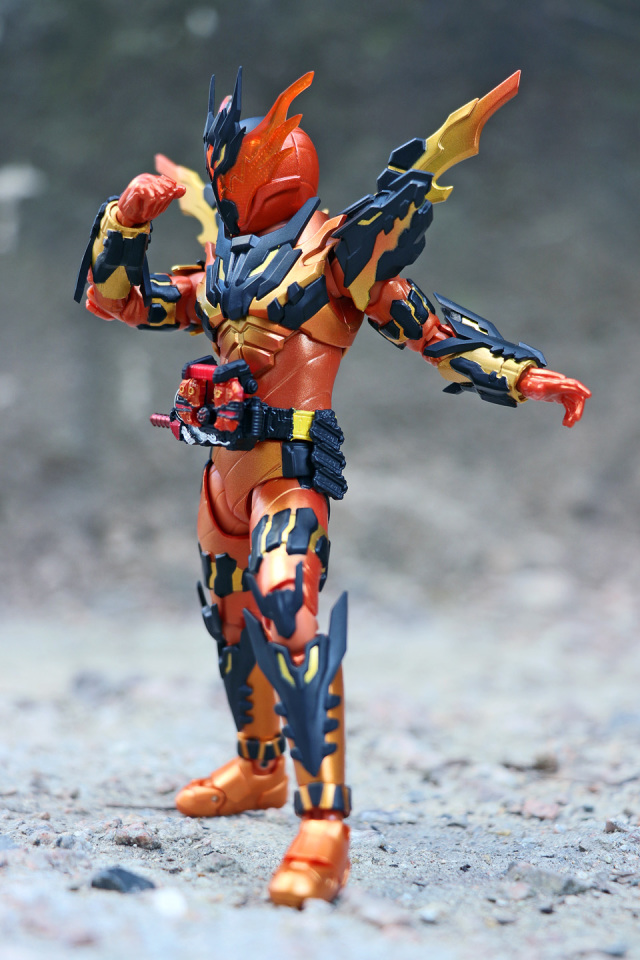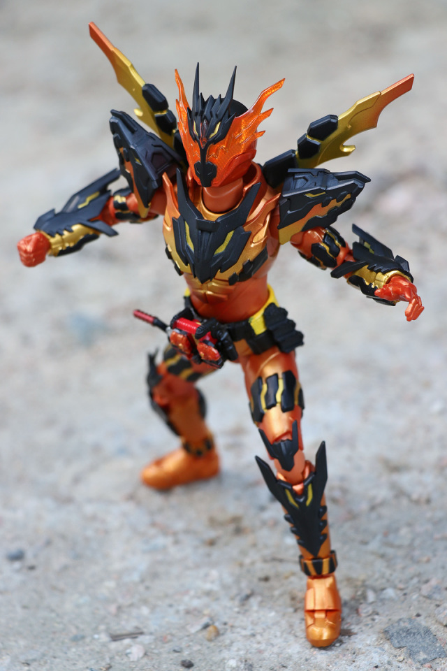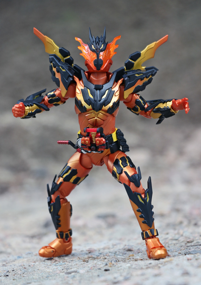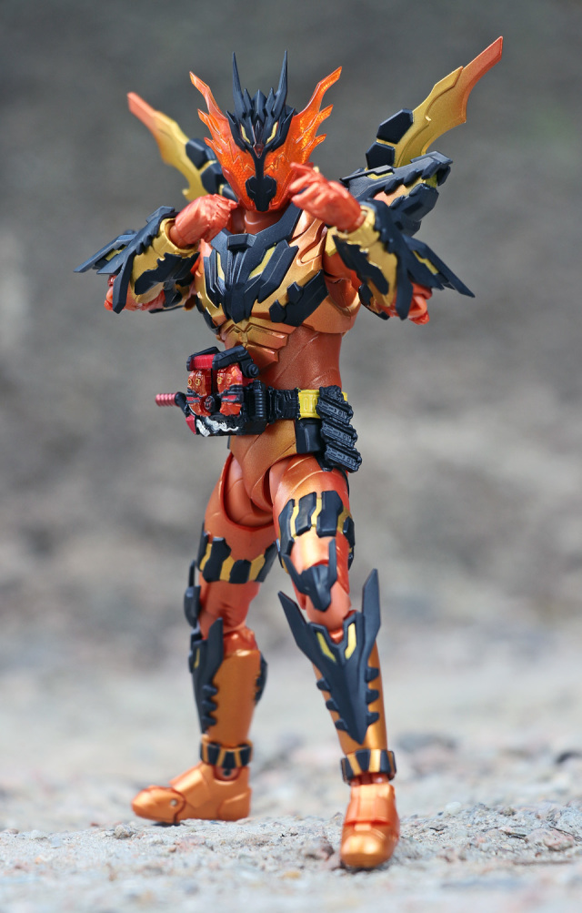 一個大人氣的角色。人偶高約 150 mm,配件較少。包括交換用手形左右各 2 種、Dragon Magma 滿裝瓶等;故可玩性一般。另外他的可動性不差,關節鬆緊度適中,啞黑色及金屬橙色的塗裝一般,不難發現細處各部著色有小瑕疵。另外原膠那些橙色頗礙眼,令整體給人一個很 "膠" 的感覺...... 外型和基本形態有一定落差。