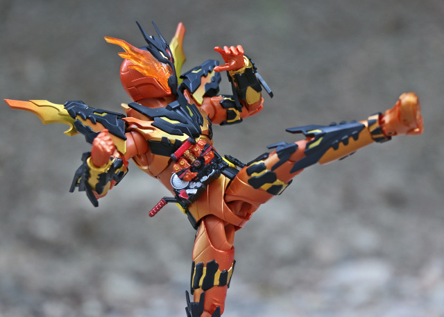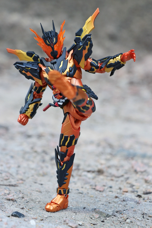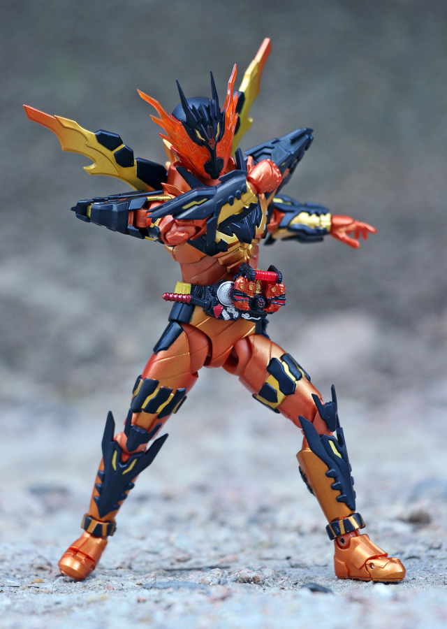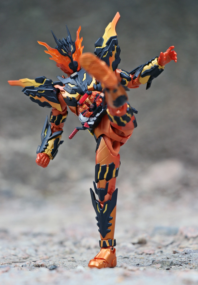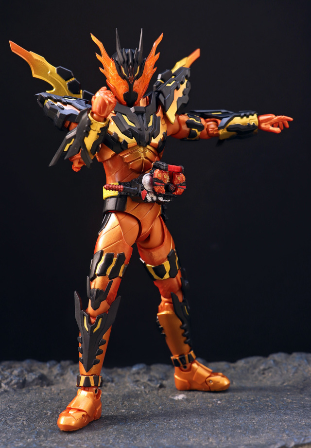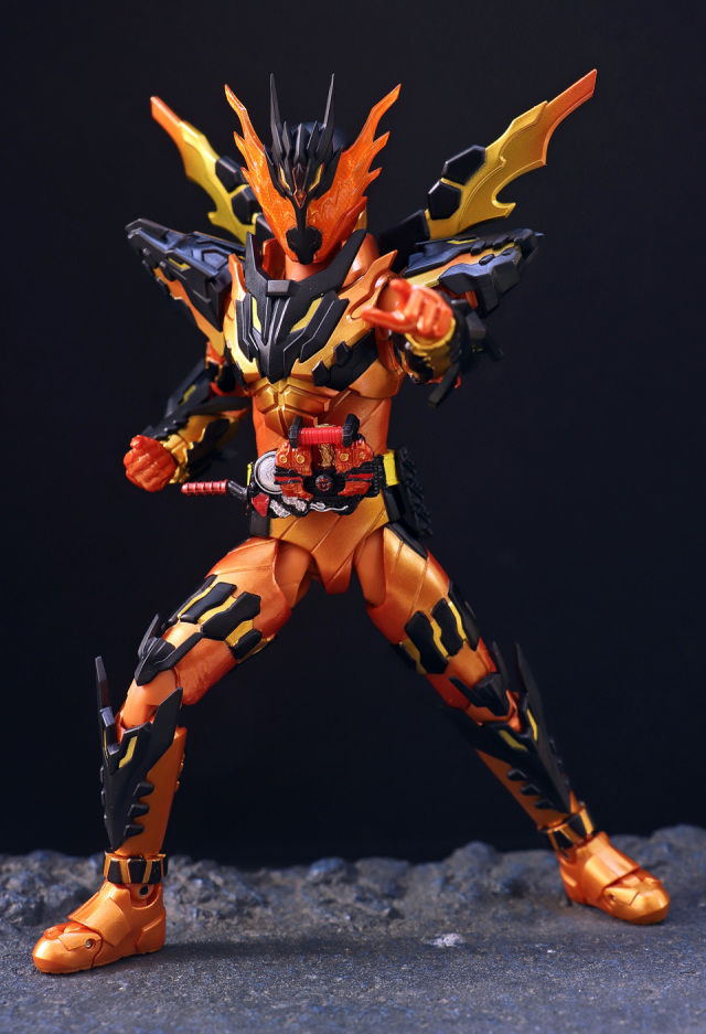 一個大人氣的角色。人偶高約 150 mm,配件較少。包括交換用手形左右各 2 種、Dragon Magma 滿裝瓶等;故可玩性一般。另外他的可動性不差,關節鬆緊度適中,啞黑色及金屬橙色的塗裝一般,不難發現細處各部著色有小瑕疵。另外原膠那些橙色頗礙眼,令整體給人一個很 "膠" 的感覺...... 外型和基本形態有一定落差。