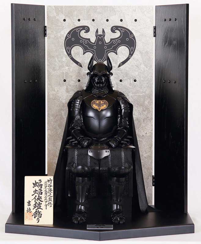「蝙蝠俠鎧飾」、「蝙蝠俠武者人偶」以「如果蝙蝠俠存在於日本戰國時代」進行企劃、製作,並邀請到曾創造多款特攝英雄、角色模型造型的鬼才原型師「竹谷隆之」擔任設計,採用一般五月人形不常使用的「當世具足(戰國後流行的鎧甲款式)」,融入蝙蝠俠特徵的漆黑身軀、披風、面具造型,同時也保留了鎧甲的古樸與莊嚴,彷彿當時確實存在過一般。