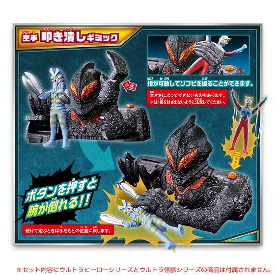 知名日廠BANDAI萬代玩具公司b-boys事業部門這次將以《超人力霸王》為題材來推出「迫力的聲響!怪獸之戰!貝利亞城堡(迫力サウンド!怪獣ぶっ飛び!ベリアルキャッスル)」(名稱暫譯),作品可以對應系列所推出的多款人氣怪獸或是超人力霸王角色,以及配置有聲音的效果,再左、右手的部份也配置有連動的機關,可以把角色彈飛或是壓擊等等不同的設計,喜愛《超人力霸王》系列作品的玩具人可以參考一下歐!
