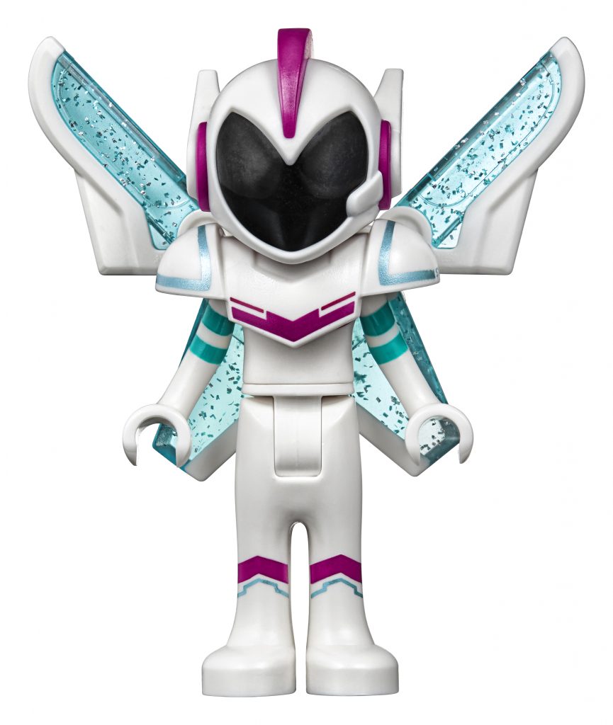 最後則來到「隨身變女王(Queen Watevra)」的華麗宮殿,用上許多白色的弧形零件與透明藍色磚,整體擁有濃厚的幻想風格!各部位的太空艙能夠分離,組裝完成之後高度來到48 公分,人偶有白閃閃的蝙蝠俠、Celeste,用磚堆砌的隨身變女王、冰淇淋甜筒、造型類似Sweet Mayhem 的皇家守衛、兩個愛心與星星。