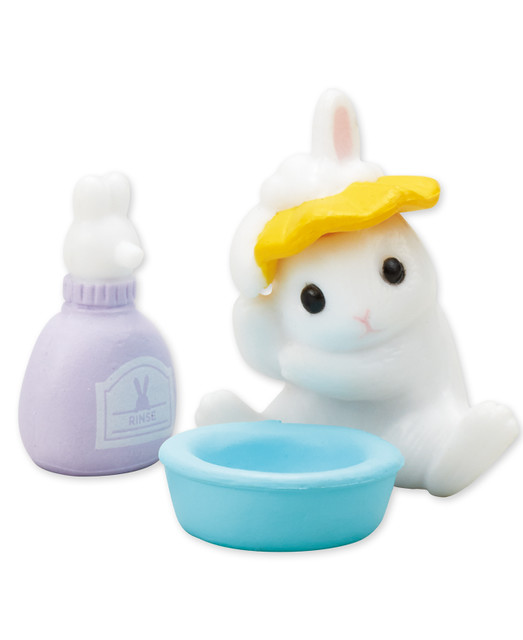 推出多款趣味動物轉蛋作品的Epoch(エポック),之前以可愛的"兔子"為題材已經推出過「日式和菓子兔」、「兔兔洋菓子本舗」、「搗麻糬兔」、「回萌兔」、「散歩小兔」、「靴子胖小兔」、「兔子的自由時間」、「納涼小兔」和「兔子與小雞」等等多款轉蛋的商品,這個月份將繼續推出相當療癒的「兔子的洗澡時光(うさぎのバスタイム)」(名稱暫譯)系列的轉蛋續作品。