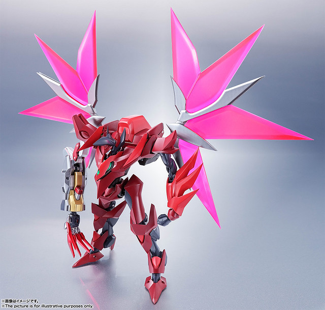 「ROBOT魂 紅蓮特式」擁有出色的可動範圍,能再現劇中華麗動感的戰鬥姿態,外裝施以細緻的塗裝分色再現裝甲表面的金屬光澤感。右腕特徵的輻射裝置能以替換零件方式再現一般/展開兩種模式,能量翼可再現收納狀態,飛燕爪牙則重現基部可動機構,能擺設出射出狀態。