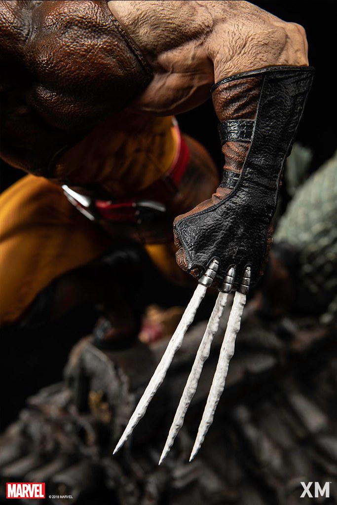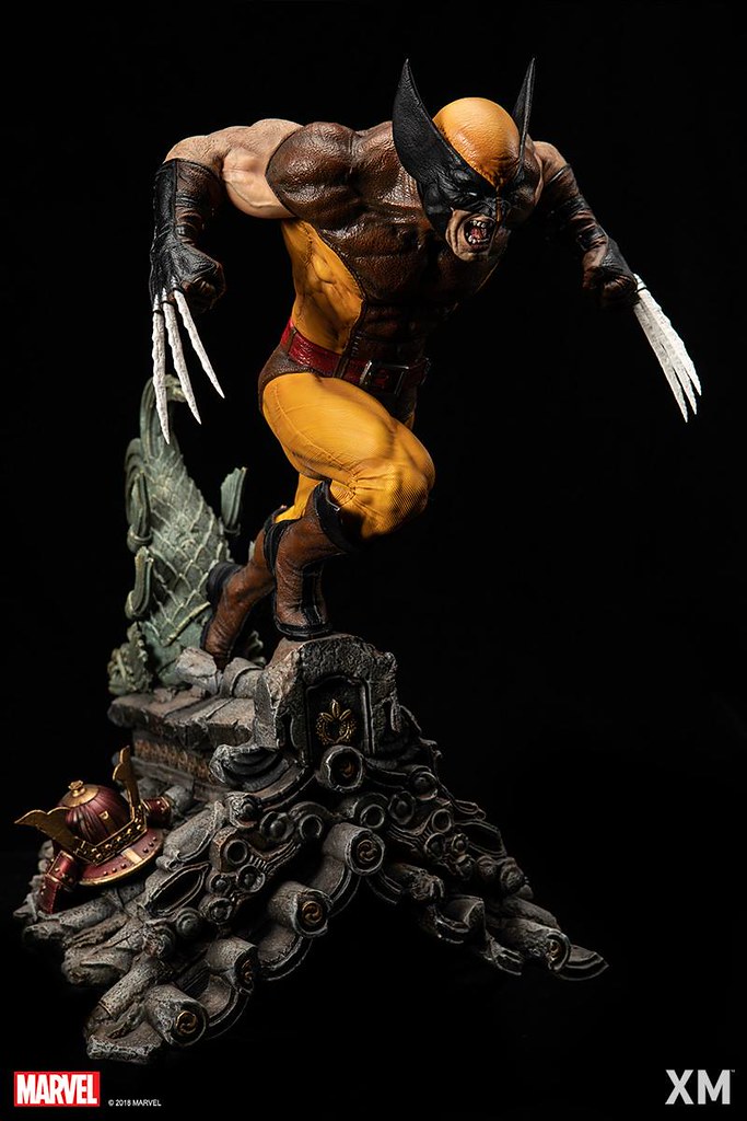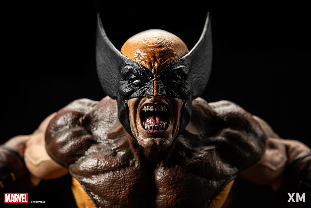 金鋼狼,原名「詹姆斯“羅根”豪利特(James “Logan” Howlett)」,是X 戰警的初始成員,在美國軍方進行秘密實驗時,全身被灌入亞德曼金屬,由於其強大的自癒能力,使得骨骼與亞德曼金屬結合,造就了他無堅不摧的鋼爪!金鋼狼在漫畫中出現過多個版本的服裝;本次的雕像是根據金鋼狼在80、90 年代擁有高人氣的黃、褐復古配色造型來製作。