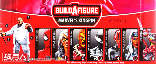 ▼盒背則清楚地標示出各個BAF零件被收錄在哪裡,以方便玩家的蒐集。是的,本套的BAF正是鼎鼎大名的反派角色「金霸王」(Kingpin)!