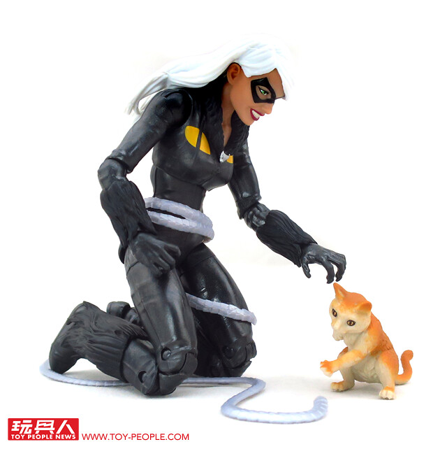 ▼「黑貓」(Black Cat),本名費莉西亞·哈迪(Felicia Hardy),最初登場於《蜘蛛人》漫畫第194期,是位時正時邪的超級反英雄。為了向曾經強暴過自己的大學男友報復,費莉西亞接受了嚴格的格鬥和武術訓練,並繼承了父親大盜「The Cat」之名,踏上了竊盜與犯罪之路。在遇到蜘蛛人之後,曾一度與彼得成為戀人,歷經了分分合合,可說是彼得情史中相當精彩的一段。